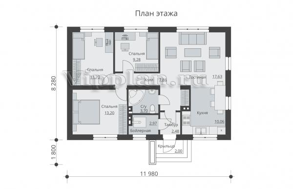 | Размеры дома: | 11.98м×8.28м |